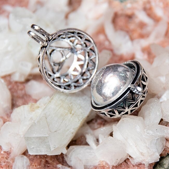 動くたびにチリチリと言う涼やかな音を鳴らすガムランボールです。音は大きくなく、軽く耳に聞こえる感じですので、日常的なアクセサリーとして使用していてもうるさくありません。