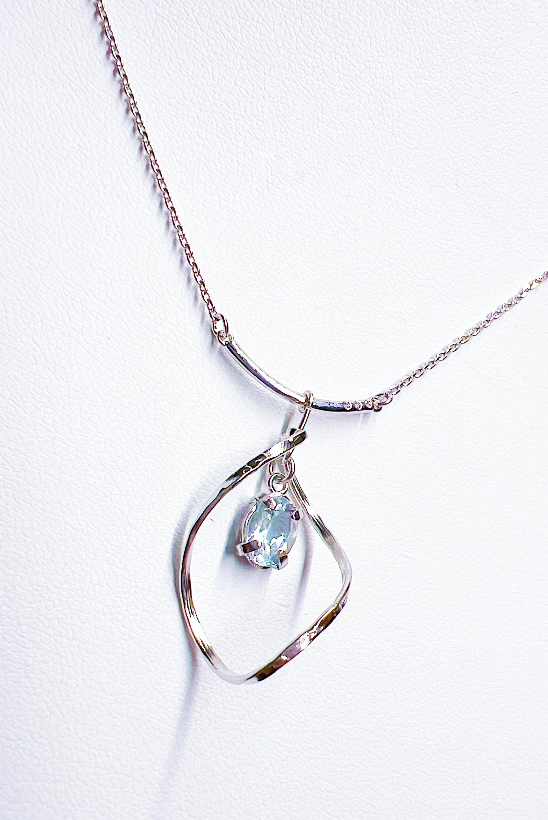 【ハンドメイド】アクアマリン ツイストドロップペンダント